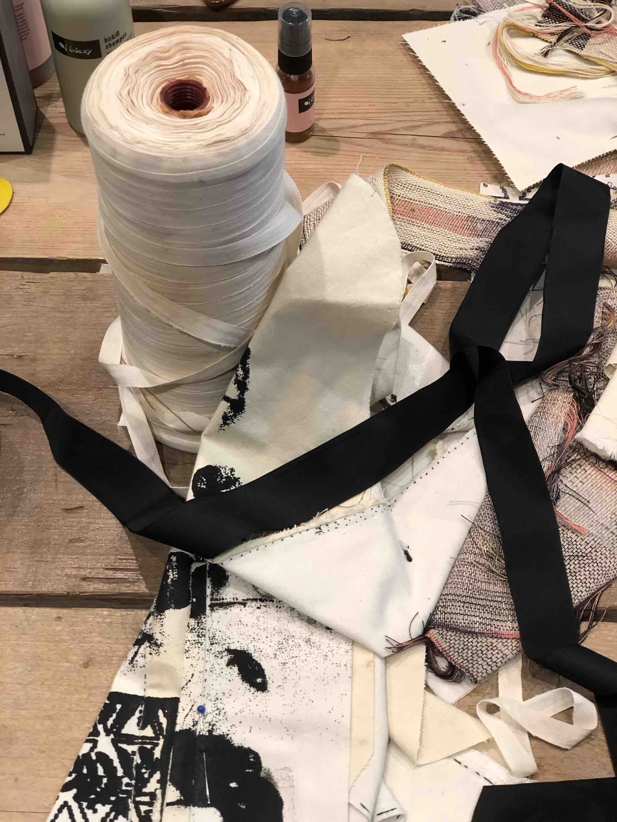 I spent the winter weaving pieces for my new collection, now piecing, placing & stitching.